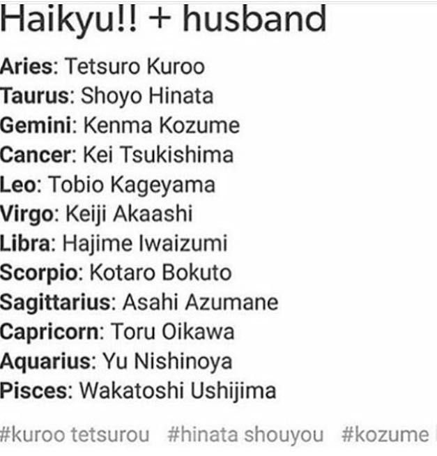 One is a match for you!!!!! haikyuu characters. Hello~ to start off this quiz, what is your zodiac sign?